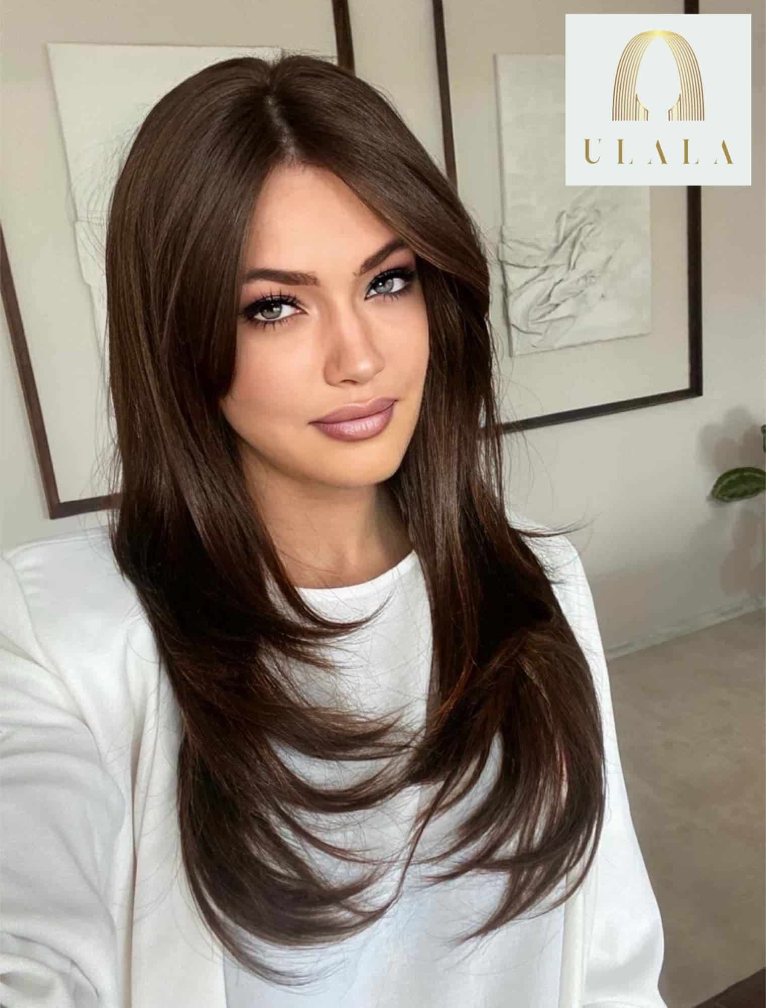 Forma: Hosszú, fokozatosra (lépcsőzetesre) vágott. Hordható oldal – és függönyfrufrus változatban is.