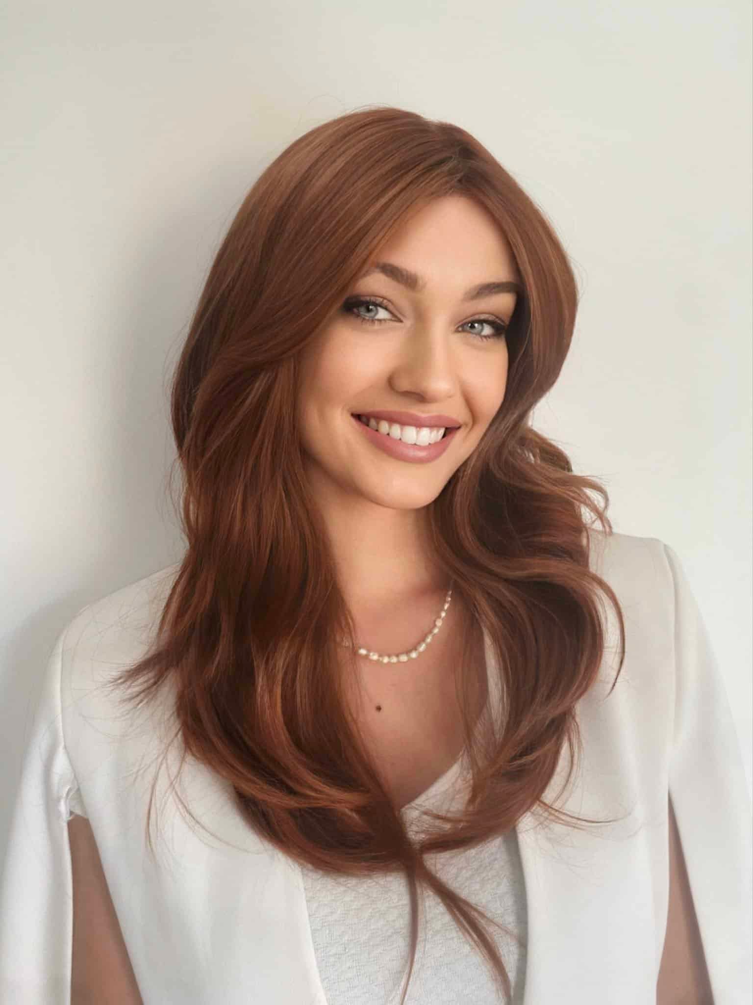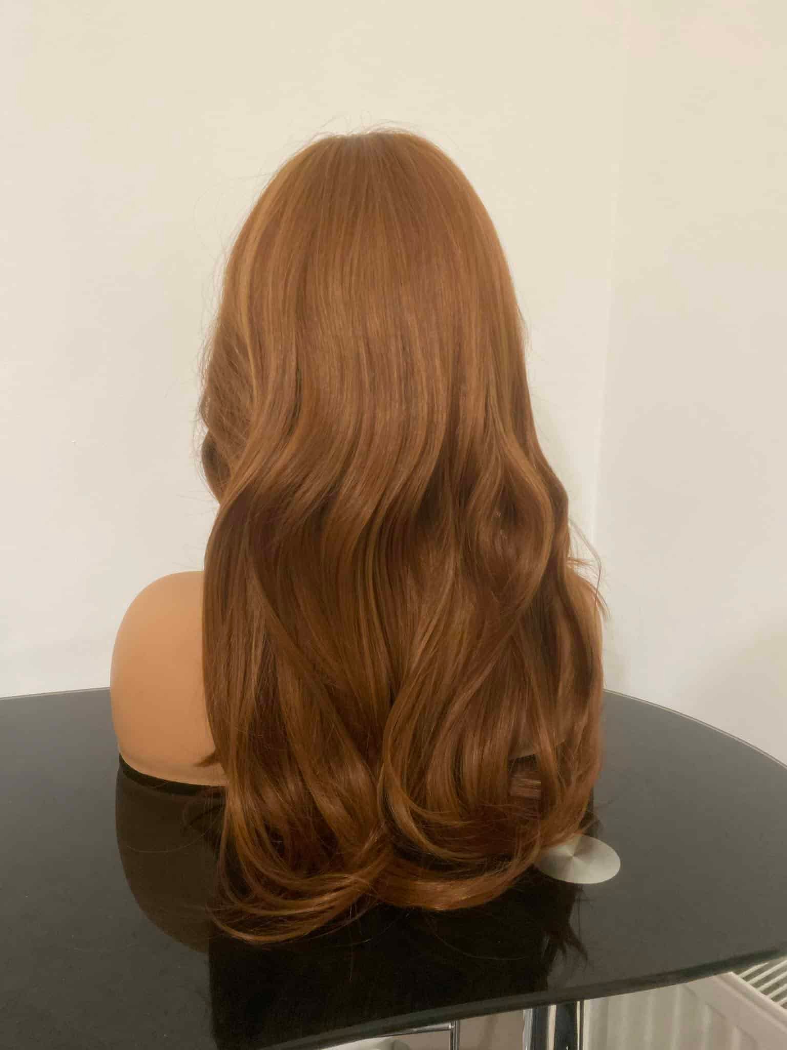 E hosszú rézvörös paróka 70 %-a eredeti emberi hajból készült, melyet 30%-ban szintetikus szálakkal dúsítottunk (kevert haj). Mivel a valódi haj aránya magasabb, illetve a szintetikus szálak is a legjobb minőségű anyagból készültek a szintetikus hajak kategóriájában, ezért garantált a természetes hatás. Ezenfelül, a választék mentén a paróka ún. ,,mű fejbőrrel” ellátott (mely a képen is látható), tökéletesen imitálva az emberi hajas fejbőrt. Az említetteknek köszönhetően a parókát nem lehet megkülönböztetni a valódi hajtól.