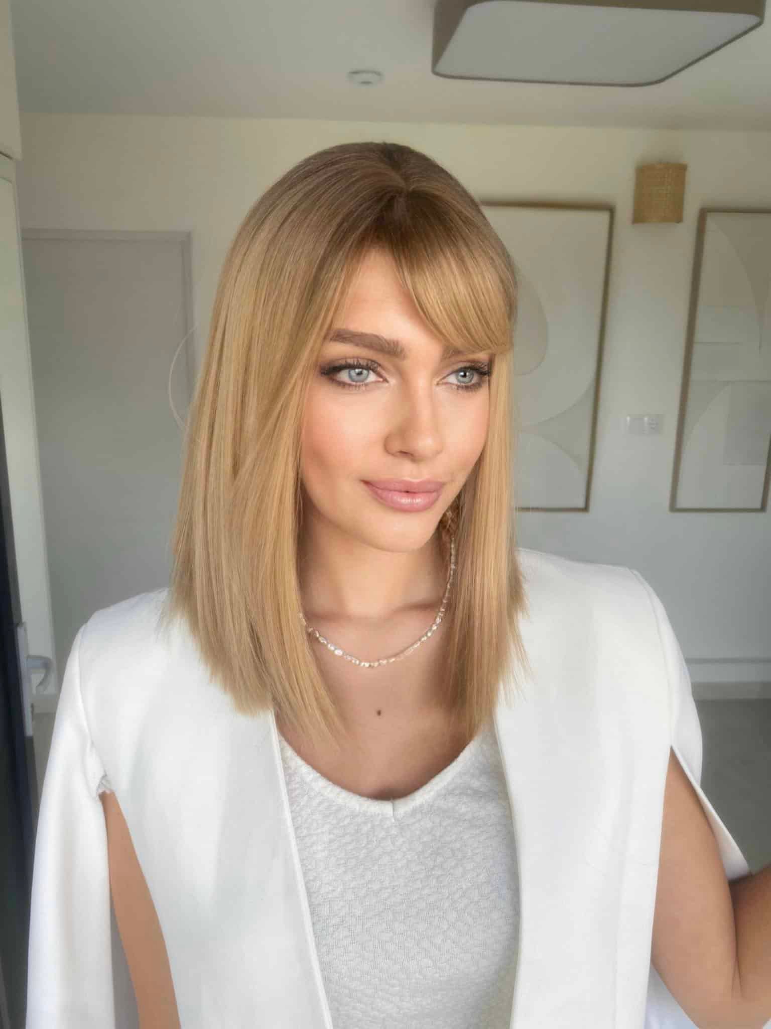 - Forma: Egyenes, középhosszú. Változtatható frufrú: hordható teli – vagy oldal frufruval.
